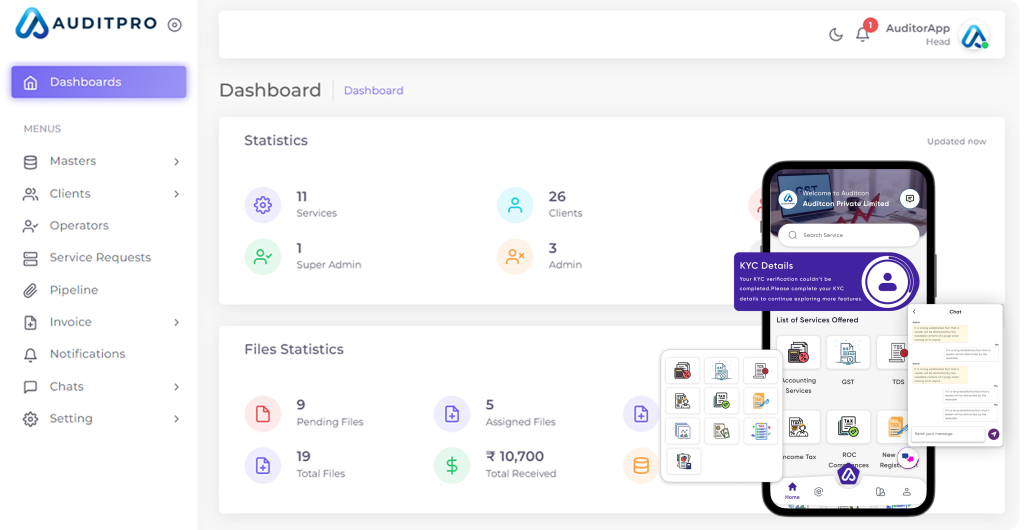 Auditpro is a complete Client–Auditor Relationship & Service Management Platform built exclusively for Chartered Accountants and audit firms.